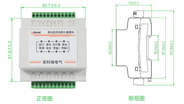 AMC16-DETT 基站直流电能计量模块主要是针对有共享需求,且开关电源无分用户电量计量功能的基站而设计的。仪表可对六个回路的直流电能进行计量,并可为配套的霍尔传感器提供工作电流,同时可通过上位机软件实现零漂校准,具有遥测、遥 信、遥调、实时电量计量、供电质量异常告警、信息存储及处理、信息交互等功能。该模块可分别计量三家运营商的直流用电量,为基站节能改善提供详细的数据依据,为直流配电设备提供分项计量解决方案。