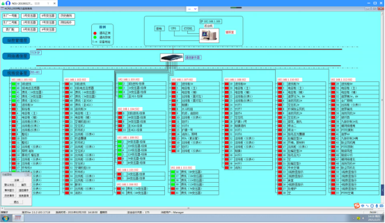 10)网络拓扑图:支持实时监视接入系统的各设备的通讯状态,能够完整的显示整个系统网络结构;可在线诊断设备通讯状态,发生网络异常时能自动在界面上显示故障设备或元件及其故障部位。